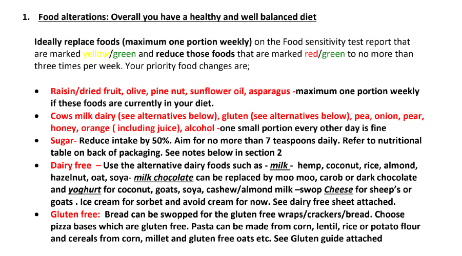 So we reached out and booked an appointment for food sensitivity testing and nutritional advice. The assessment was around an hour consisting of questions to understand dietary habits, existing ailments and then food sensitivity tests. Previously when I heard about allergy tests it involved a lot of needles but this was done with a bioresonance health screening system. You held the device and it applied electro-stimulation to determine what food or substances you were sensitive to. The results were interesting showing that I have a high sensitivity to sugar which included lactose and gluten.