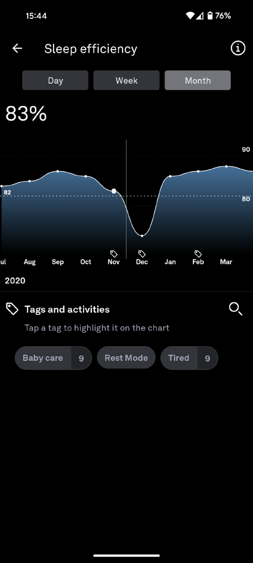 My sleep efficiency during 2020, can you guess when my son was born?