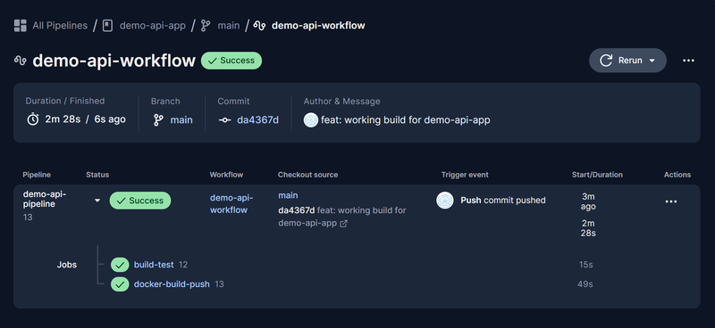 With all this configured, we can commit the changes to the config.yml and trigger the pipeline.
